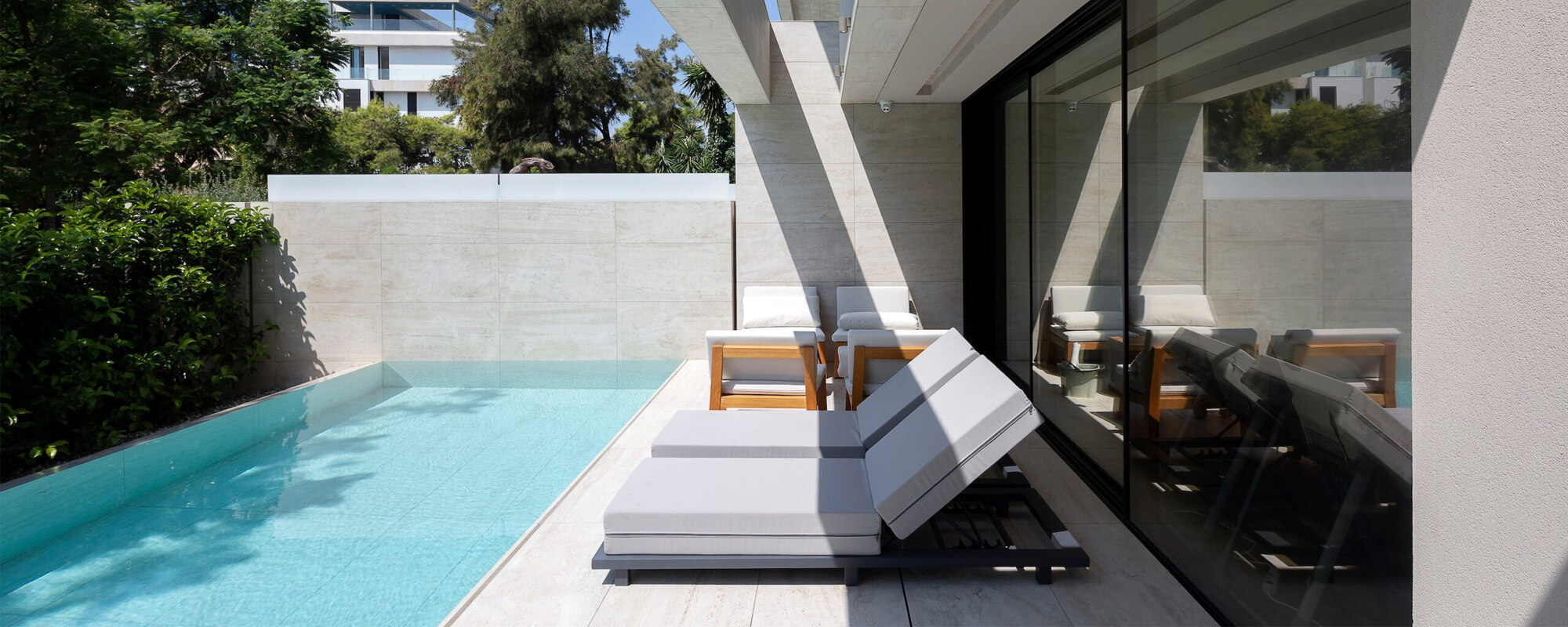 The installation includes smart controls and touchscreens, which allow full control of lighting, shading, temperature and operating scenarios in each apartment, motion detectors and sensors, for the automated activation of lighting and the enhancement of safety in public and private spaces and electrical panel materials fully compatible with the KNX protocol.
